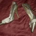41-es ezüst alkalmi cipő 9, 5 cm sarok Ethelaustin Ráirt méret: 7 Sarok magassága: 9, 5 cm A belső talphossz: 26, 5 cm A külsején sok-sok apró ezüst kocka csillogó, kevest használt újszerű állapot....
